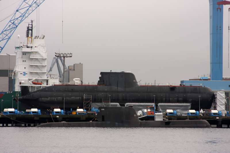 This photo of Valerij Uhlich from shipspotting.com shows the Greek Papanikolis and Portugese Tridente side by side in Kiel, Germany. One is a Type 214 and the other is a Type 209 PN. But which one is which? It is obvious that the Portuguese Type 209 is a Type 214 in reality. I have no clue why the Portuguese submarines are reclassified; possibly of political reasons.