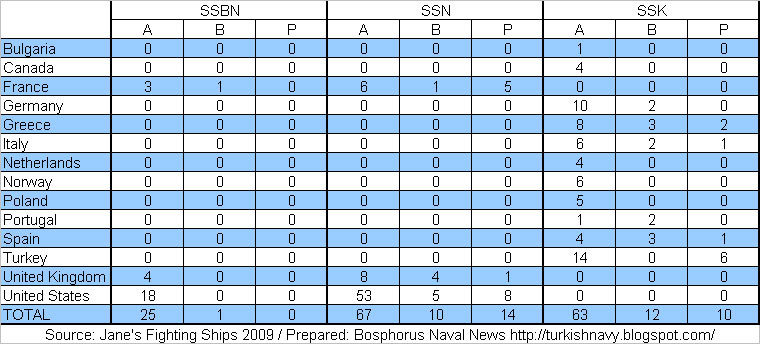 - P: Planed, confirmed and budgeted submarine constructions scheduled for 2010 or later are shown as planed