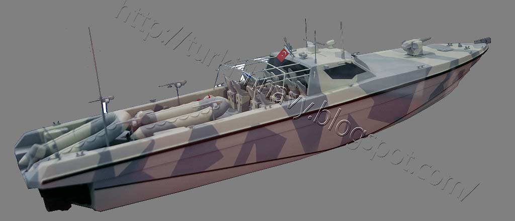 The two infiltration boats called as MRTP 22 U class are the boats this shipyard sold to Turkish Navy. They are 24 meters long and have 48 tons displacement. Powered by two 2200 hp engines and water-jets, they can make up to 55 knots.