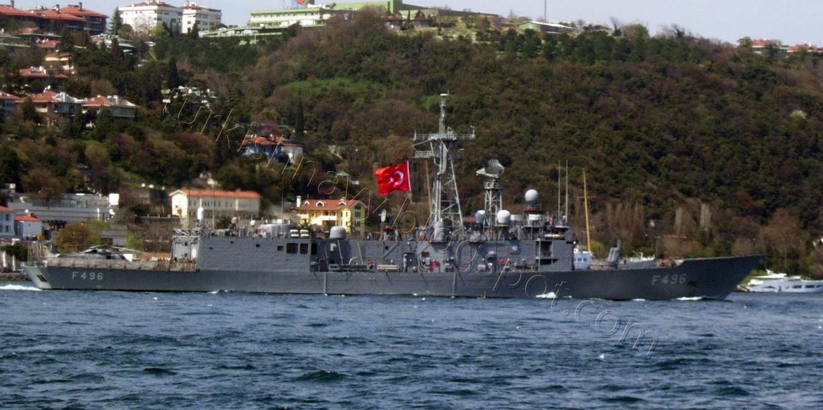 One of the participating frigates is F-496 TCG Gökova. She was making a north bound passage in the Bosporus today with a MEKO-200 class frigate. And duly photographed by me.