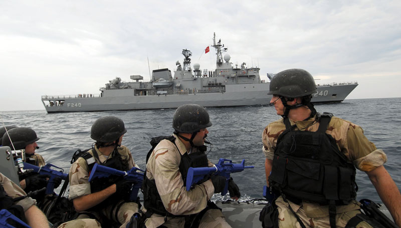 FFG-50 USS Taylor, crew members participated in a compliant visit, board, search and seizure (VBSS) exercise with the Turkish navy frigate F240 TCG Yavuz July 19, during exercise Sea Breeze 2010.