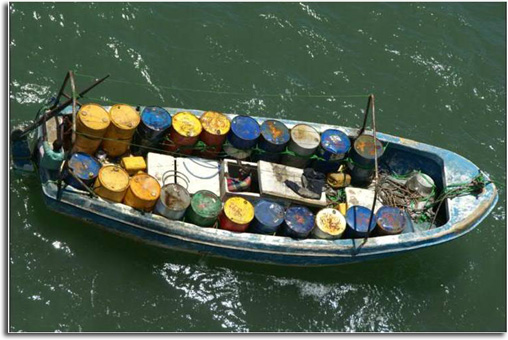 The seven-man boarding team found 21 drums of fuel, enough to sustain a small vessel at sea for many days, and a long ladder with hooks (the kind typically used by pirates to board large cargo vessels).