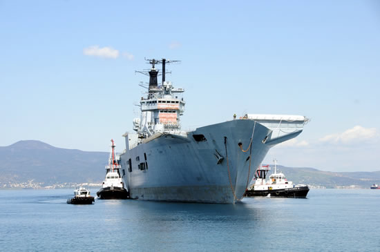 Yesterday on 12 April 2011, the 5 tugs towing the hull of the former British aircraft carrier HMS Invincible arrived at Aliağa, İzmir.