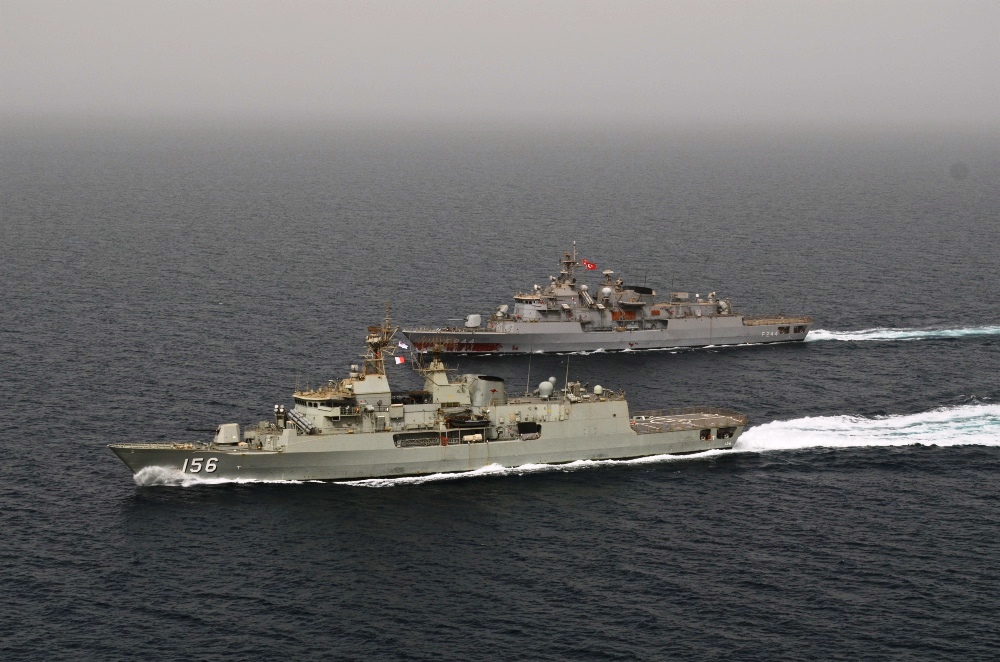 The Australian frigate HMAS Toowoomba conducted Exercise Scimitar Exocet with Turkish warships TCG Barbaros and TCG Yarbay Kudret Gungor before the Turkish ships stopped in Jeddah, Saudi Arabia for a port visit.