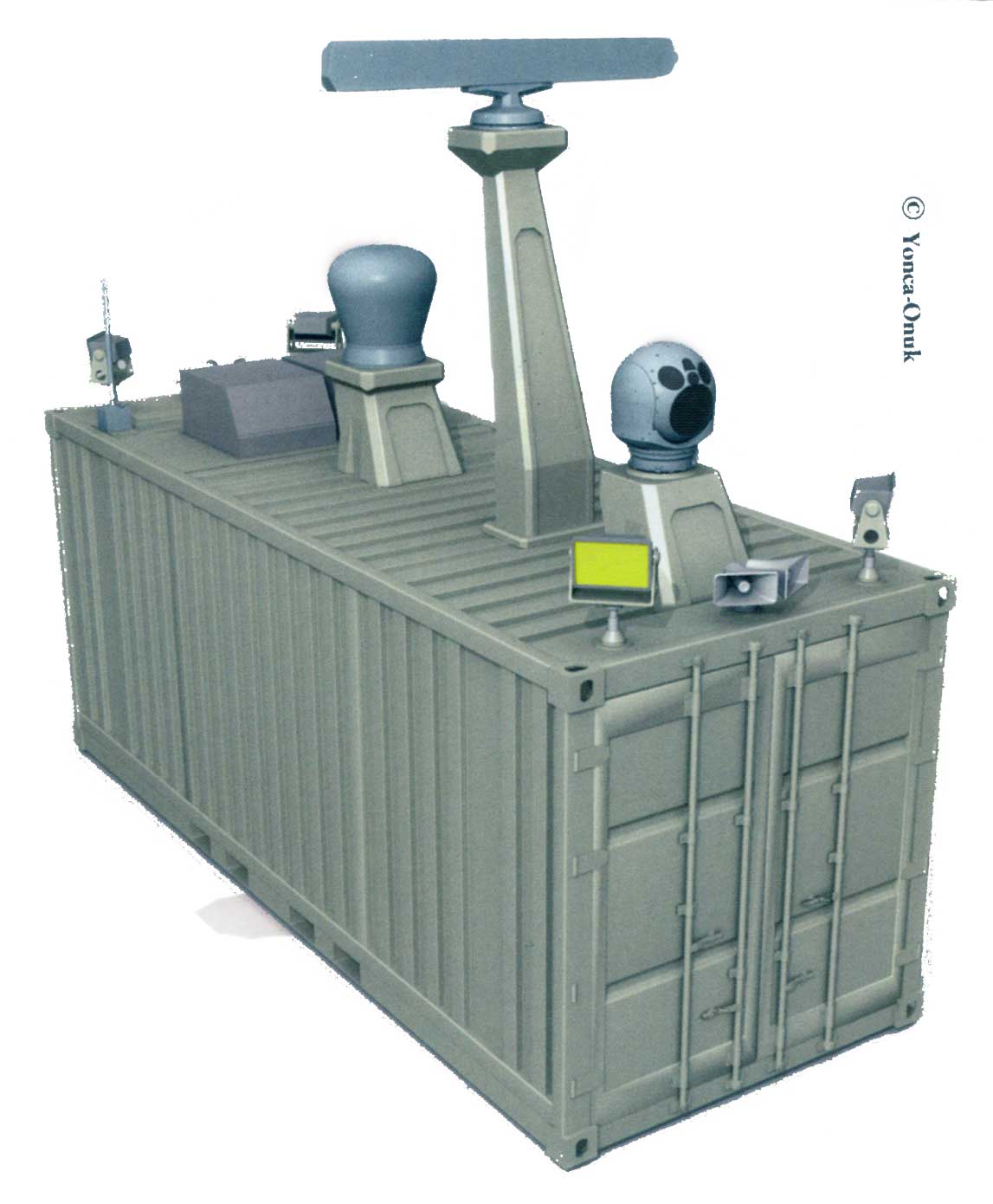 Gözetleyici (The Observer) is the nerve center of the Korkut concept. It is basically a ISO standard container containing a radar, elect-optical directors, communications systems and the combat management system Combat. where all the incoming data is processed, visualized, controlled and shared.