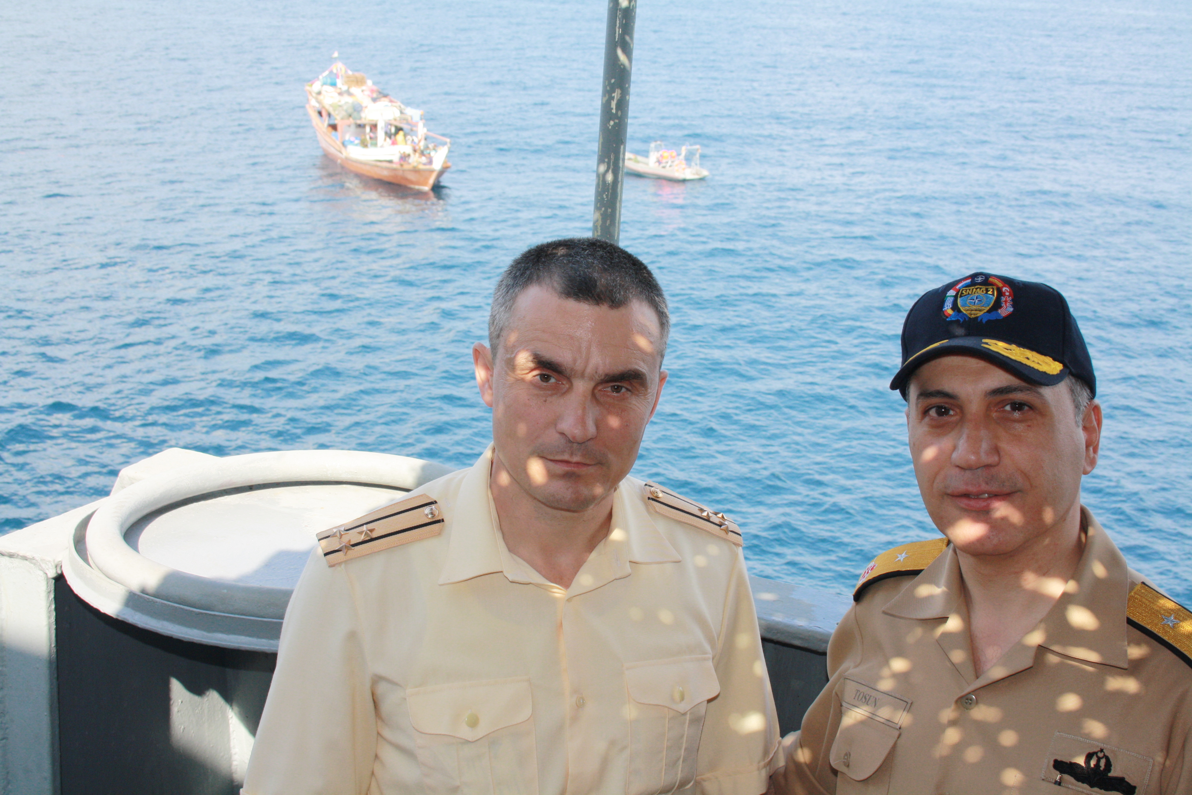 According to a NATO press release, Rear Admiral Sinan Azmi Tosun, Commander of the NATO Counter Piracy Mission Operation Ocean Shield, visited the Commander of Russian Warship Detachment of Russian Pacific Fleet, Captain 1st Rank Ildar Ahmerov on board of his flagship Admiral Tributs in the Gulf of Aden.
