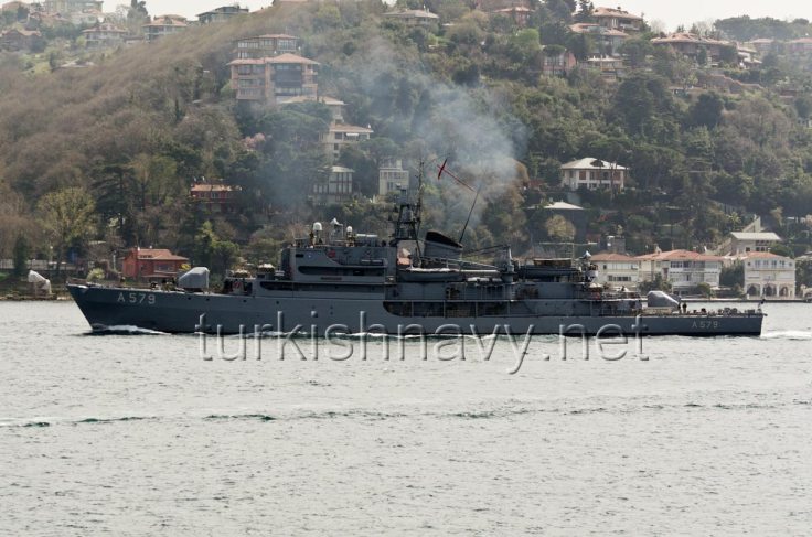 Saturday, 7th April 2012 was a busy day at Bosphorus. First the Rhein class tender A-579 TCG Cezayirli Hasan Paşa and two mine hunters plus one veteran mine sweeper made northbound passage through the Strait for their deployment to the Deniz Yıldızı 2012 naval exercise.