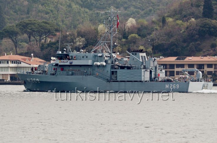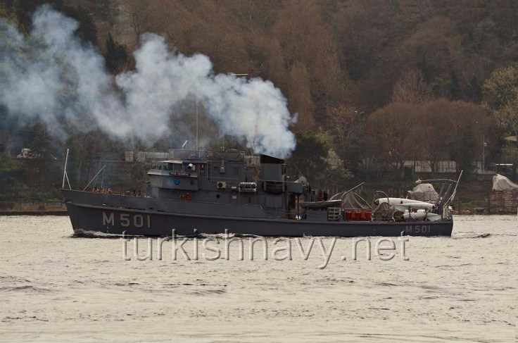 M-269 TCG Anamur was build in Turkey. She is one of the 6 Aydın class minehunters. Their design is based on German Type 332 class. M-260 TCG Edincik is one of the 5 Circé class mine hunters bought from France in 1997, when the two countries had a rare period of harmony. M-501 TCG Fenike was build in 1967 in USA to be transferred to Turkish Navy under Military Assistance. She is old and smoking not as heavy as the Russian destroyer Smetlivy, but smoking never the less.