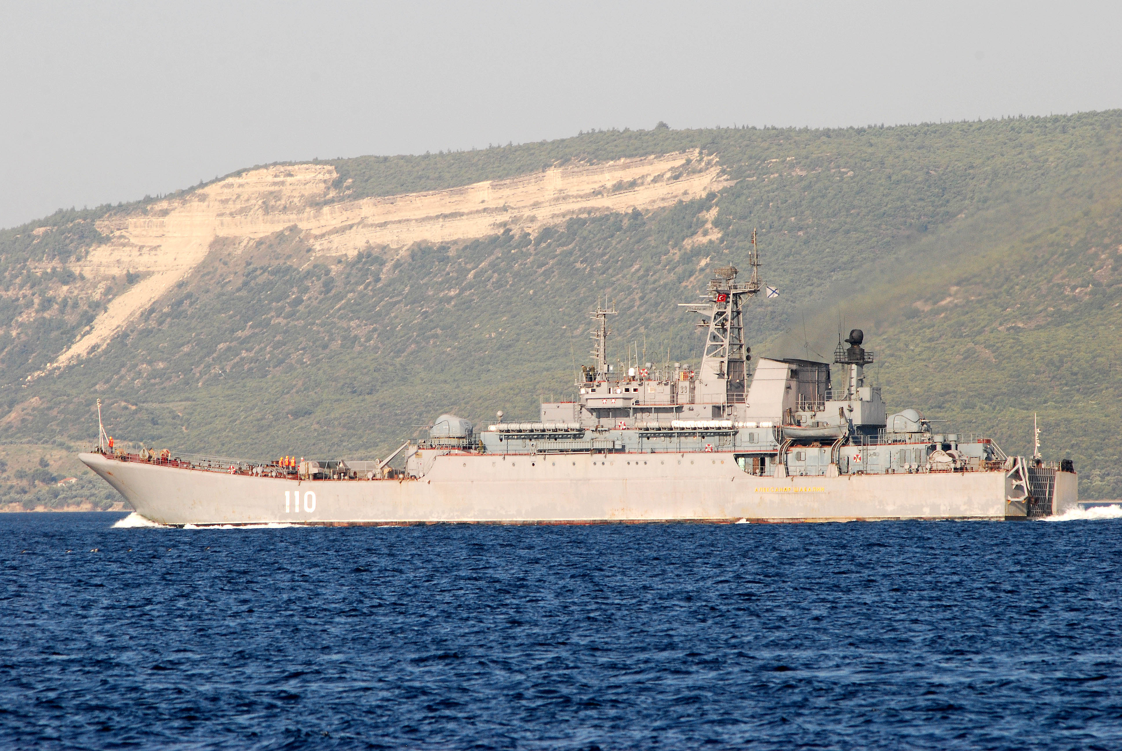 Today two Ropucha class landing ships of the Russian Baltic Sea Fleet, 102 Kaliningrad, 110 Alexander Shabalin, passed through the Dardanelles and entered into the Aegean Sea.