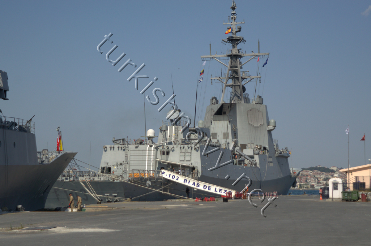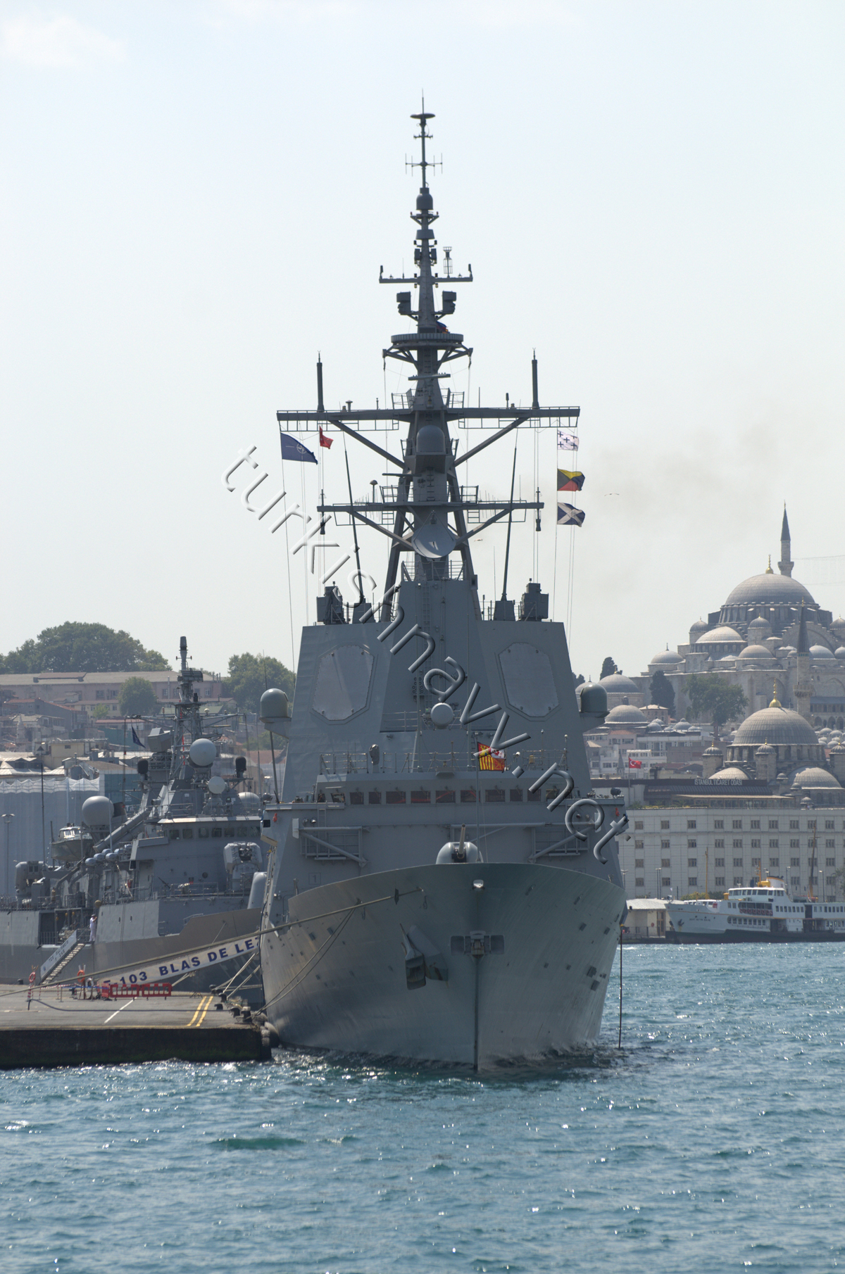 The flagship of the SNMG-2, Spanish frigate F-103 SPS Blas De Lezo in İstanbul.The hanger of the SPS Blas De Lezo, seen from her landing pad.The mast of the SPS Blas De Lezo.One of the four SPY-1D radar arrays of the SPS Blas De Lezo.The detailed view of one of the four SPY-1D radar arrays of the SPS Blas De Lezo.The starboard side of the superstructure of SPS Blas De Lezo.SPS Blas De Lezo, docked in İstanbul.SPS Blas De Lezo, docked in İstanbul.TCG Salihreis with her new Smart-S Mk2 3D radar.TCG Salihreis docked in İstanbul.TCG Salihreis docked in İstanbul.The starboard side of TCG Salihreis.The detail view of the Smart-S Mk2 3D radar on board of TCG Salihreis.