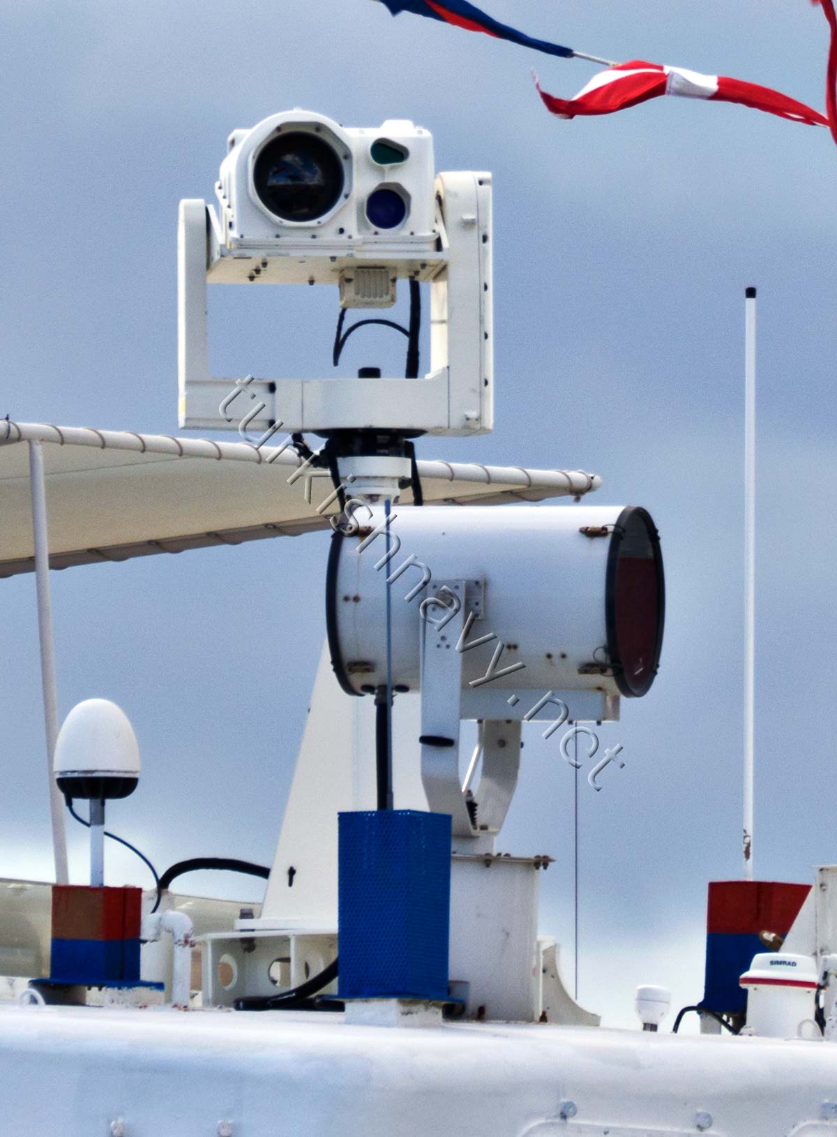 The last photo of the SG-80 TCSG-80 is the most interesting of them all for me. As you can see below enlarged, Turkish Coast Guard has started to install a thermal imaging system to its boats. This is long-due addition to these boats sensors. This particular sensor suite look very similar to Aselsan’s Falconeye electro-optical sensor system. If this is the case than the system has thermal imaging system, a high performance day TV, target acquisition system and a laser pointer. Four boats of various classes have received this new sensor already.