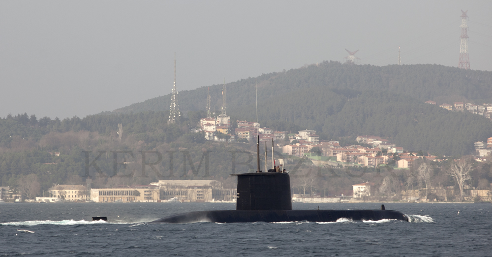 A Turkish Type 209/1200 class submarine on Bosphorus. Photo: Kerim Bozkurt. Used with permission.