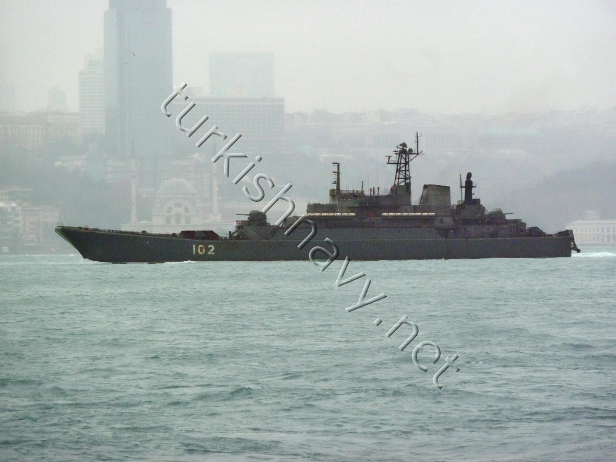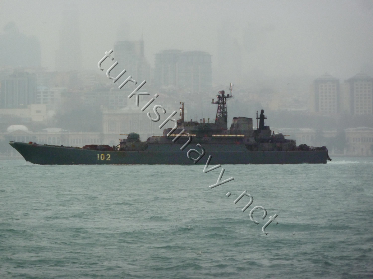 Today, during an awful winter storm the Russian large landing ship 102 Kaliningrad passed through the Bosphorus.
