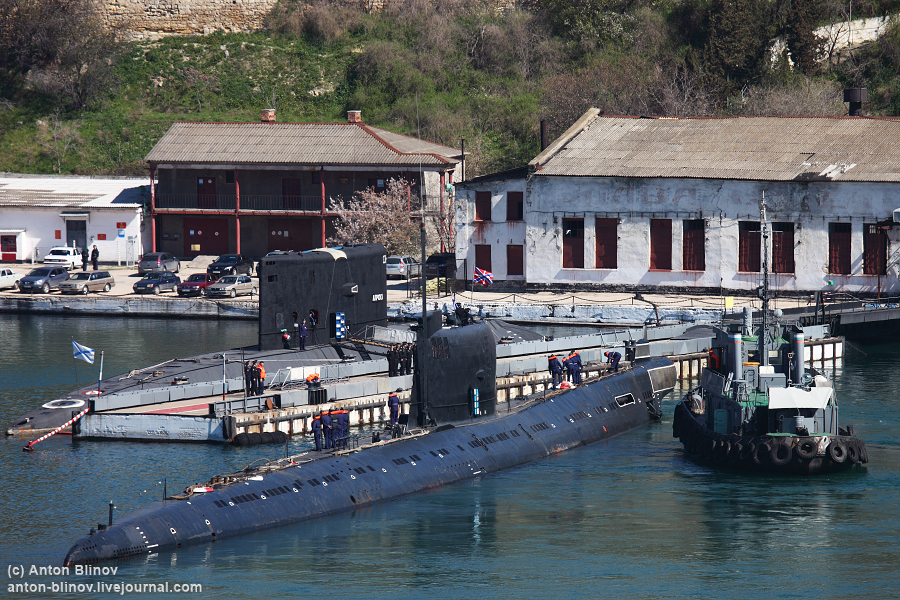 The Russian blogger Anton Blinov has an excellent set of photos taken at the re flagging ceremony of the old Soviet, old Ukrainian new Russian submarine.