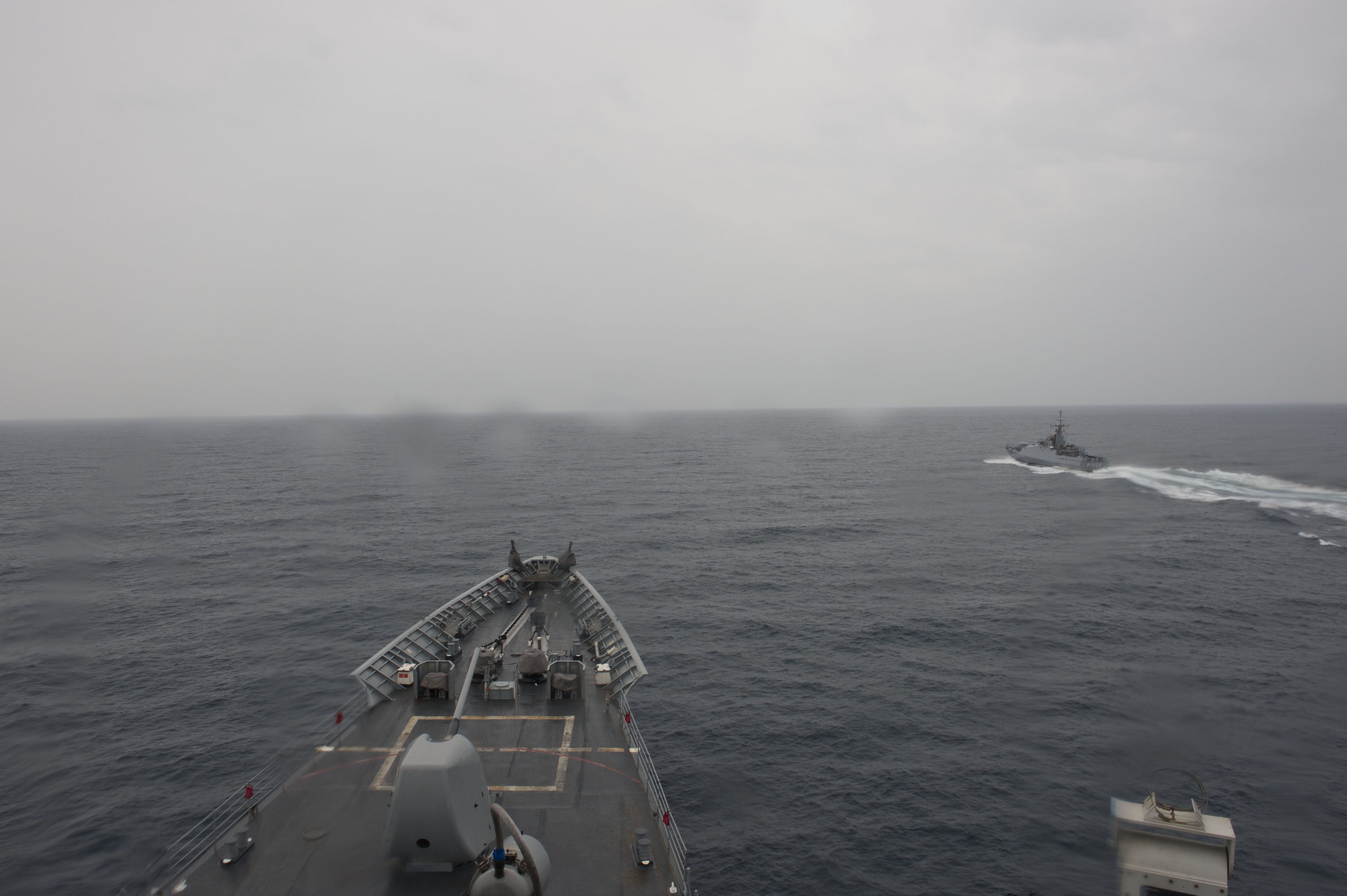 Vella Gulf and Tuzla conducted tactical maneuvering during the exercise. U.S. Navy ships regularly hold similar events with allies and partners to foster relationships and strengthen interoperability.