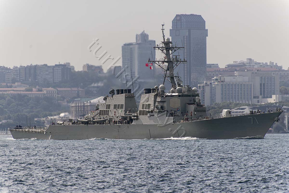 Today the French Type A 69 Aviso class frigate F-796 Commandant Birot and US Navy destroyer DDG-71 USS Ross passed through Turkish Straits and entered to the Black Sea.