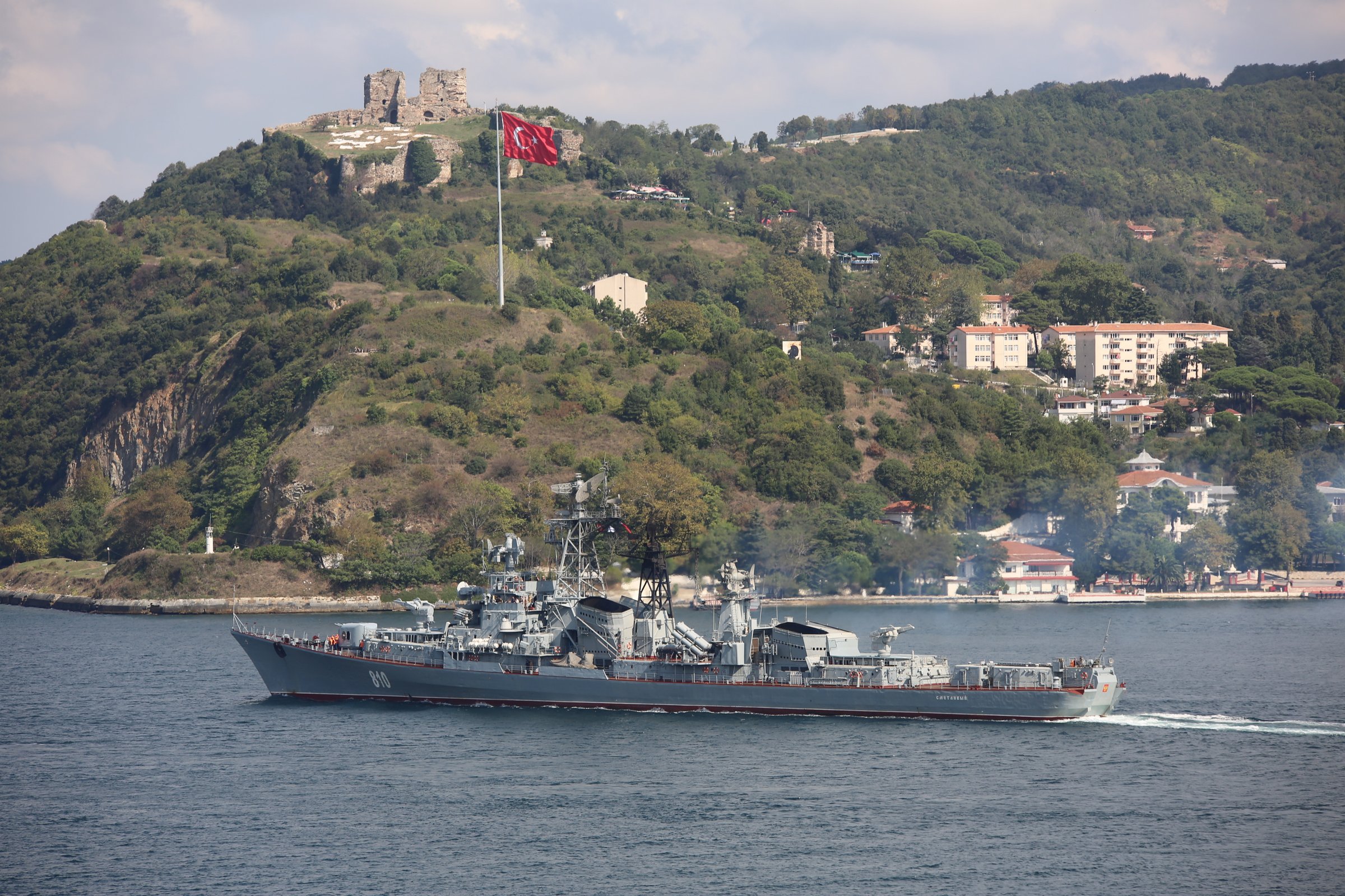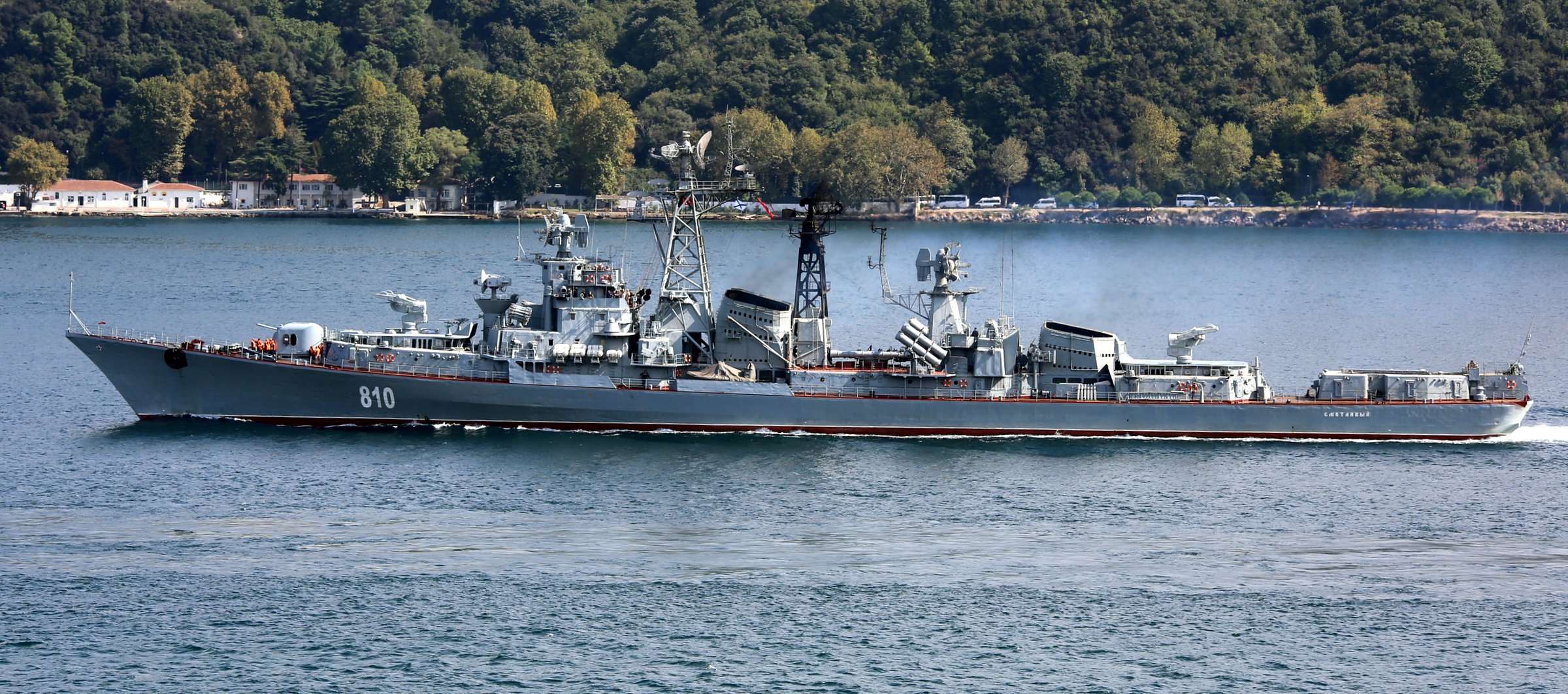 Russian Kashin class destroyer Smetlivy making a northbound passage through Bosphorus on 12 September 2014. Photo: Serhat Güvenç. Used with permission.