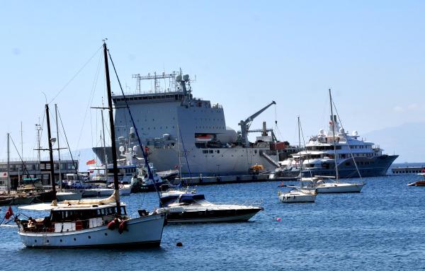 Royal Fleet Auxiliary Lyme Bay has docked in Bodrum for a port visit. Her sister, RFA Mounts Bay, made also a port visit in Bodrum during last year’s deployment.