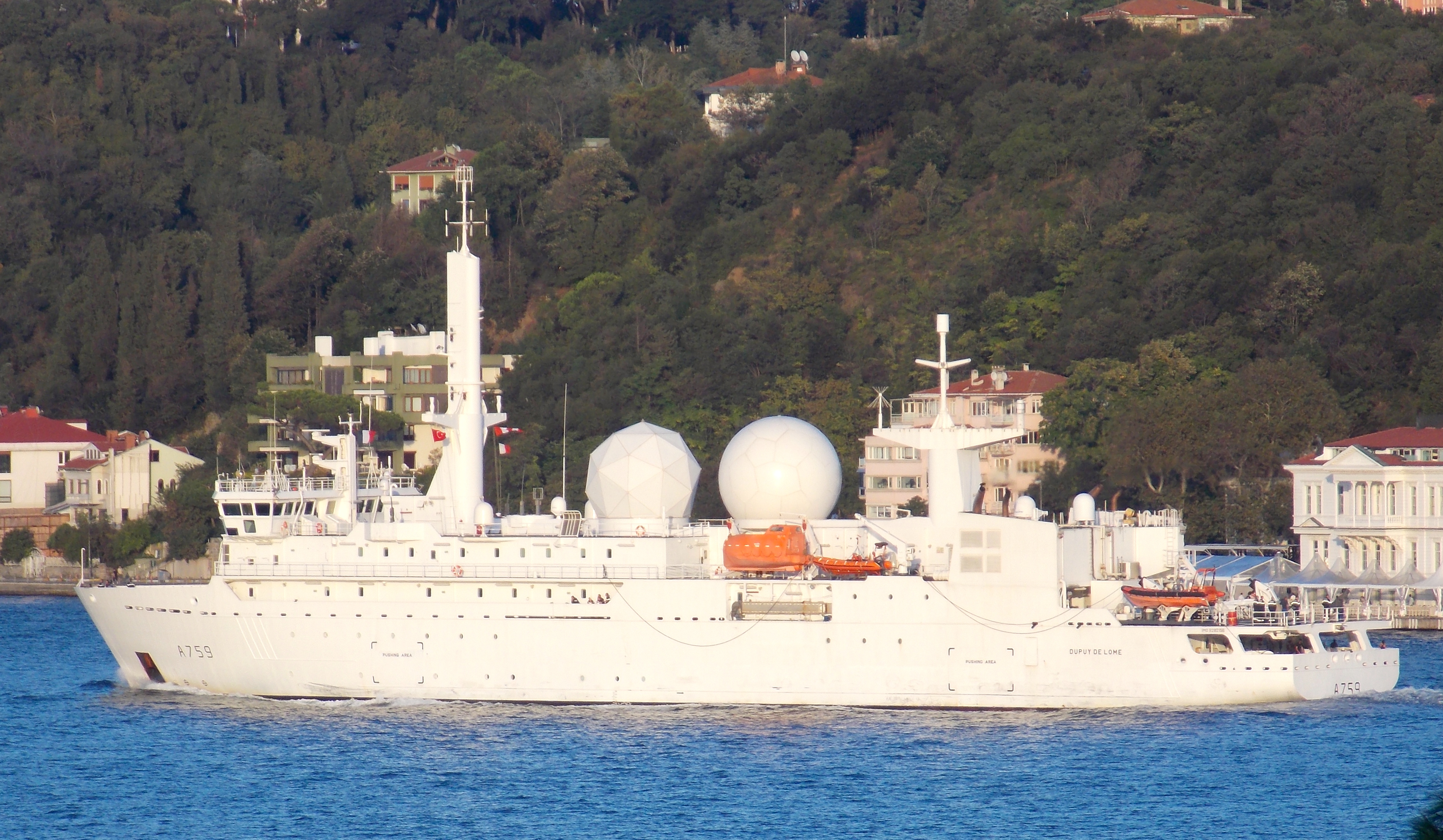 Usually spies try to be anonym and faceless. Not that spy. The French intelligence gathering ship A-759 Dupuy de Lôme has become a well know ship around this part of the world. Today she has passed through the Bosporus and entered the Black Sea for her 5th deployment in 2014.