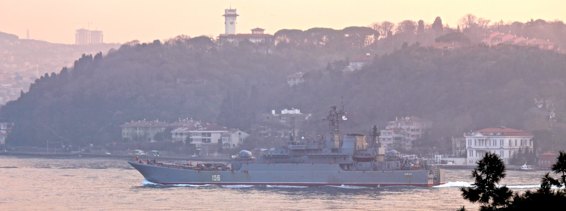 Russian Ropucha class landing ship Alexander Shabalin returns from her deployment in Syria. Photo: Alper Böler. Used with permission.