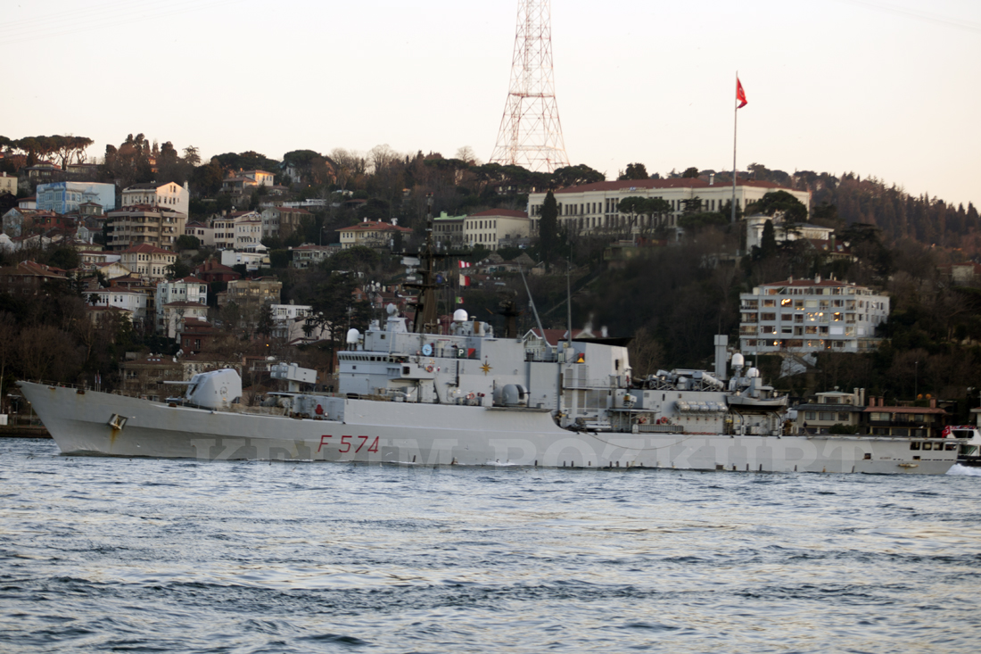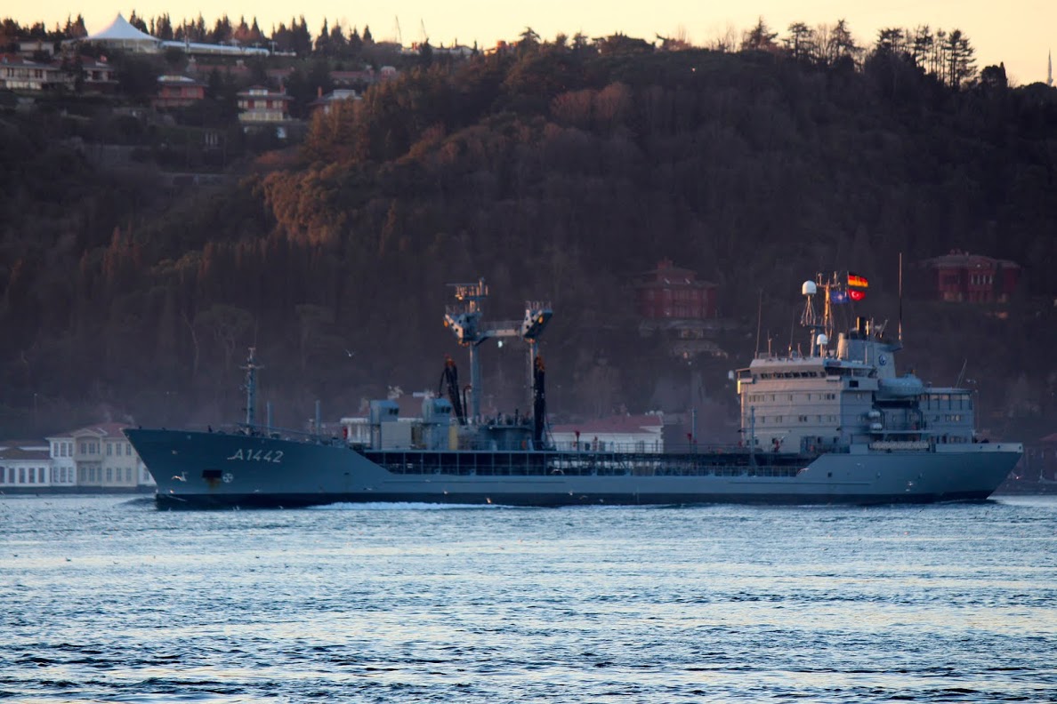 The duo was followed by the German tanker A-1442 FGS Spessart the following morning. The last two ships of the task force, 337 HMCS Fredericton and F-574 ITS Aliseo joined the rest of the group on 4 March 2015. They made their northbound transit through the Bosphorus just before the sunset.