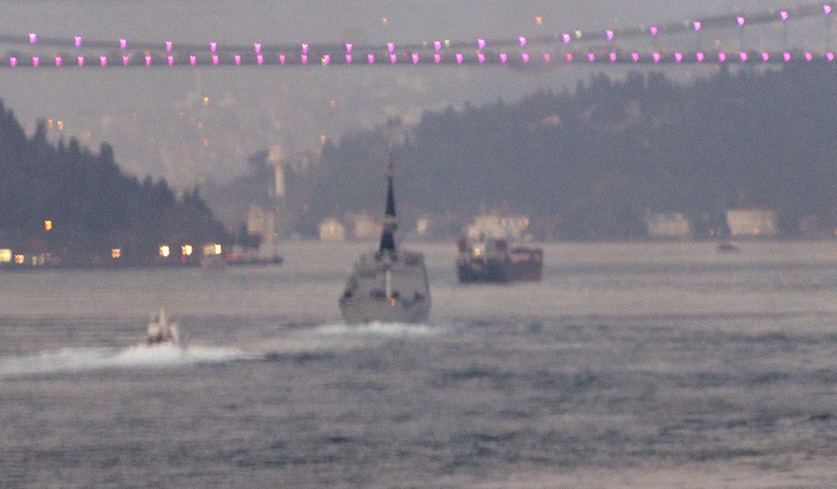 On 24 March 2015, the Russian landing ship, Nikolay Filchenkov made her southbound passage through Bosphorus. Later in the evening the French frigate F-710 FS La Fayette made her northbound passage, almost in dark.