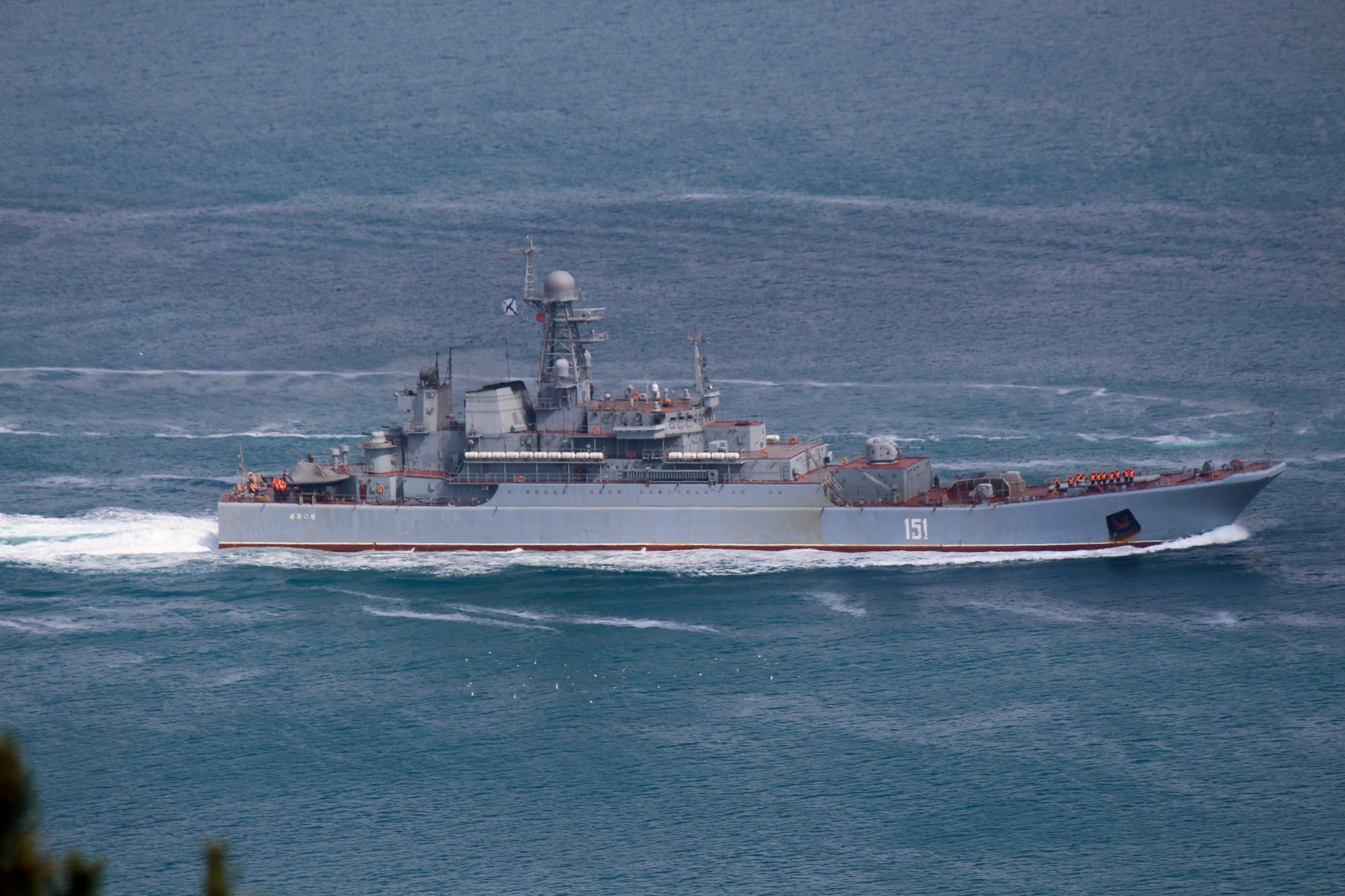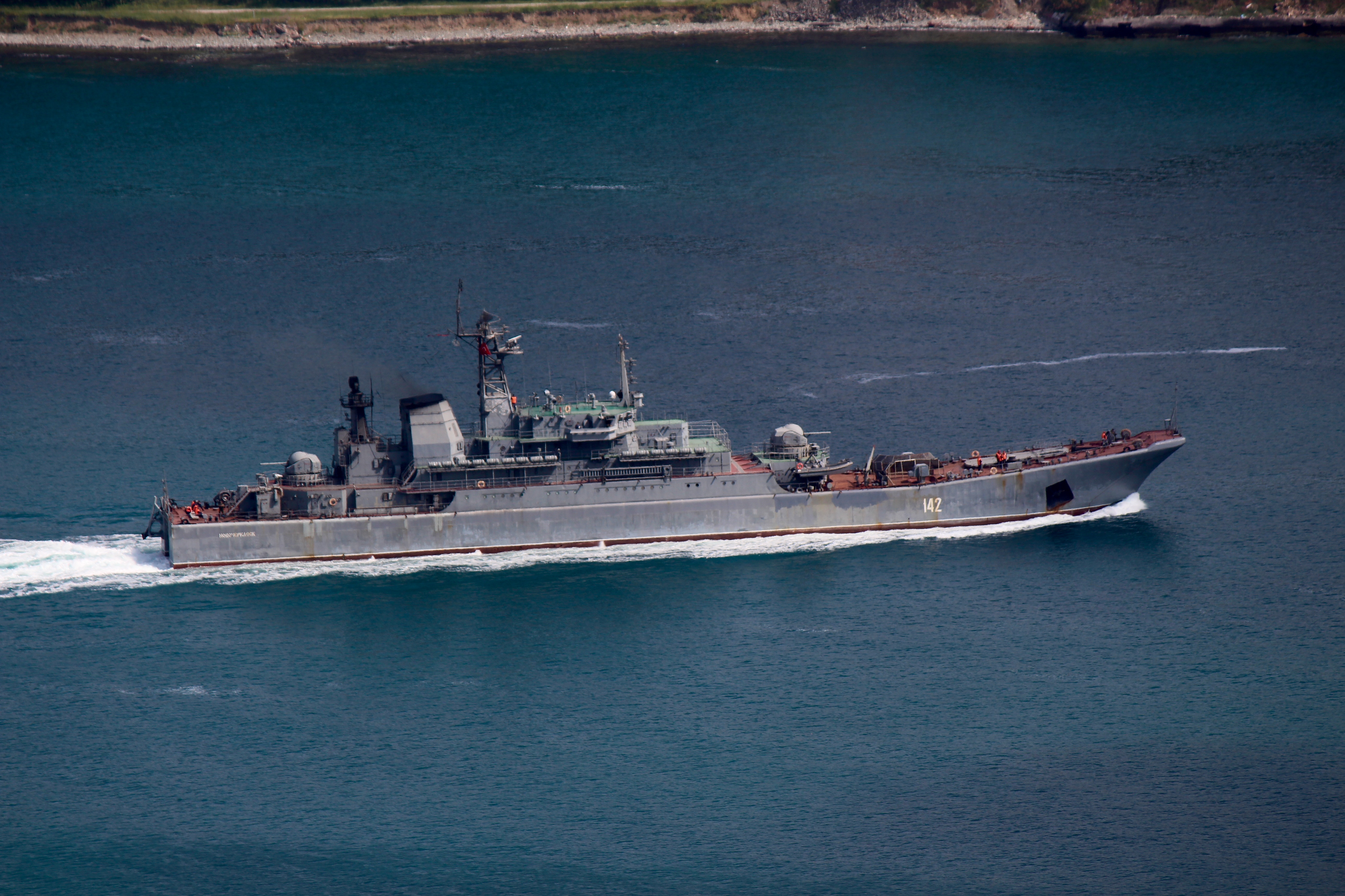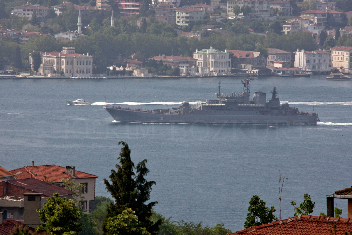 Russian landing ship Novocharkassk heading to the Mediterranean. Photo: Yörük Işık. Used with permission.