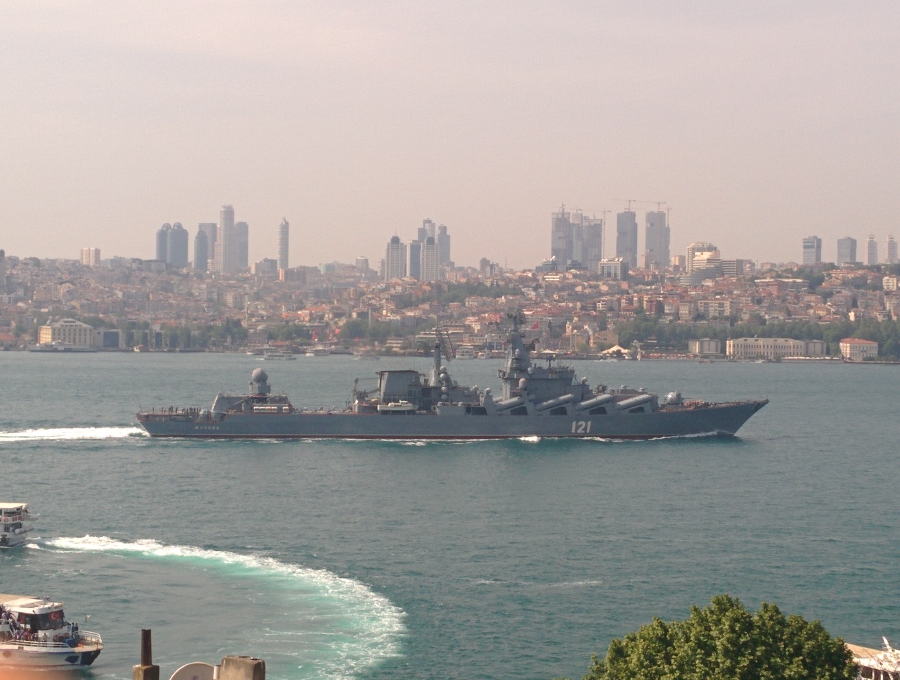The flagship of the Russian Black Sea Fleet cruiser Moskva, returning from the Mediterranean. Photo: Yörük Işık. Used with permission.