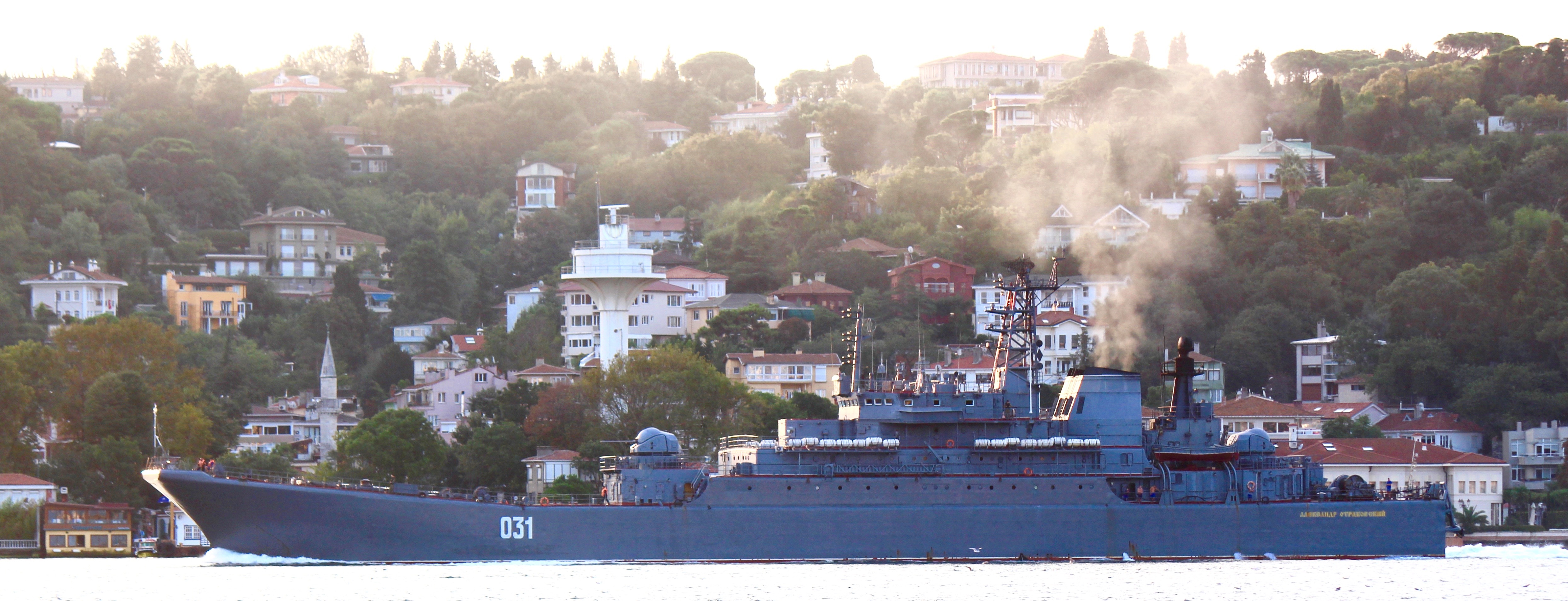 Russian large landing ship Alexander Otrakovski returning from her Mediterranean deployment. Photo: Yörük Işık. Used with permission.