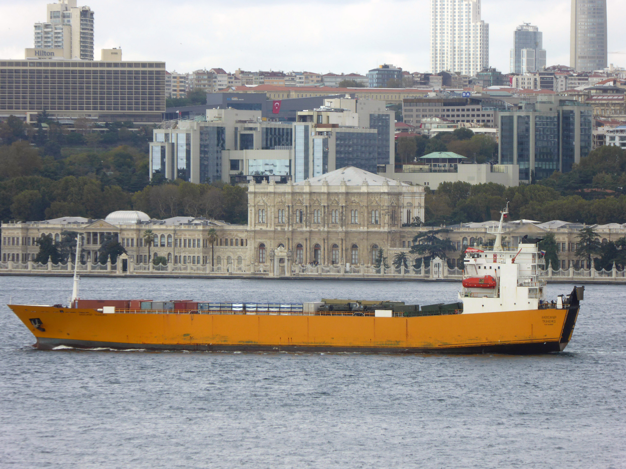 The Russian flagged RORO ship Alexandr Tkachenko, is one of the civilian ship that is used by Russian military to supply the operations in Syria. She made her latest southbound passage through Istanbul Strait on 31 October 2015.
