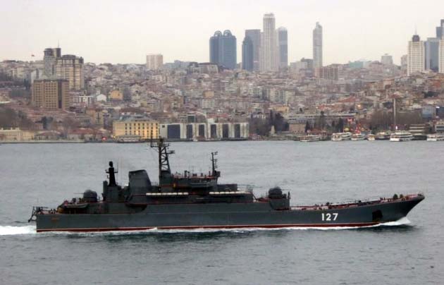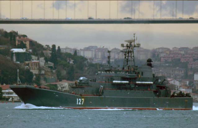 Ropucha class landing ship Minsk going back to the Black Sea. Photo: Yörük Işık.Minsk passing through Istanbul. Photo: Alper Böler.Bulgarian contribution to NATO Standing Maritime mine Group-2 mine hunter BGS Shkval. She is heading to the Mediterranean. Photo: Alper Böler.Auxiliary cargo ship Yauza passing through Istanbul trough a snow storm. Photo: Alper Böler.Yauza on her way to Syria. Photo: Yörük Işık.