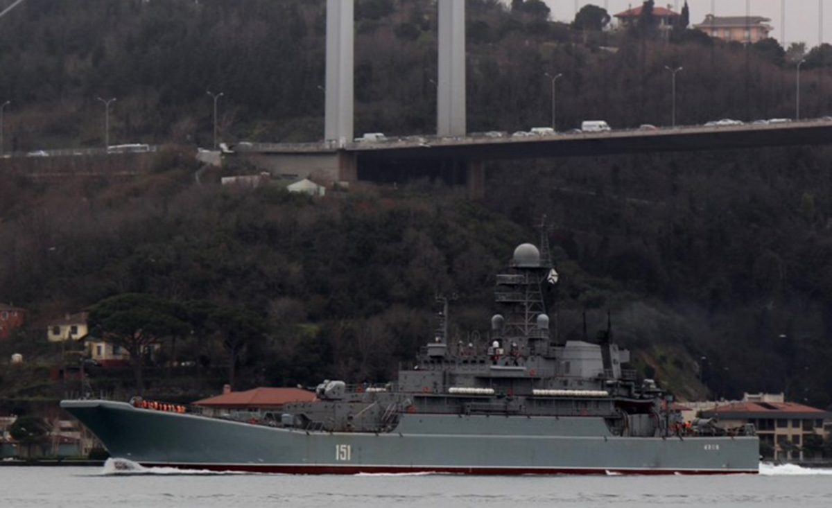 Russian landing ship Novocharkassk making her southbound passage through Istanbul. Photo: Yörük Işık.