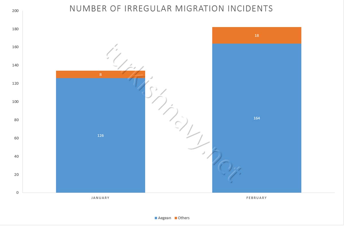 The Aegean Sea offers the most convenient router for the refugees. The close proximate of many Greek island to Turkish mainland makes it possible for thousands of refugees to reach to EU by entering Greece. The sea trip from Turkish mainland to Greek islands on overfilled and unstable RHIBs is often dangerous and deadly. %90 percent of 316 irregular immigration incidents in the first two months of 2016 have happened in Aegean according to Turkish Coast Guard.