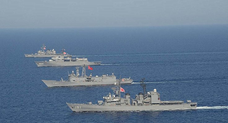 Turkish Gabya class frigate TCG Gelibolu made a passing exercise in Eastern Mediterranean with the Japanese Training Fleet.