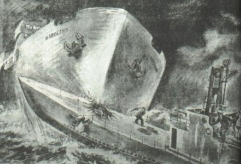 M/V Naboland rammed TCG Dumlupınar from starboard forecastle just aft of the forward diving planes. The submarine rolled to port with force of the impact and sunk immediately. 5 submariners who were in the sail, at the time of the collision survived. Rest of the crew, 81 men, were trapped inside her hull. The boat sunk at the narrowest point of Dardanelles at 85 meters where the currents are also the strongest.