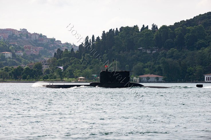 On 11th June 2018, two Ay class submarines were observed sailing towards the Black Sea. One of them is TCG Yıldıray. Unfortunately, I am not in a position to tell you which is which but here are the photos of the two submarines: