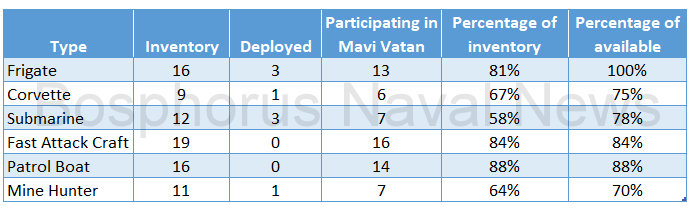 More than %80 of all corvettes, fast attack craft, and patrol boats, currently not deployed to a mission are taking part in this exercise. An impressive %93 of all frigates have sailed away. To keep so many ships for 10 days at sea requires also a good and strong logistical support. The test the logistical support Turkey can provide to its deployed forces is one of the important issues of this exercise.