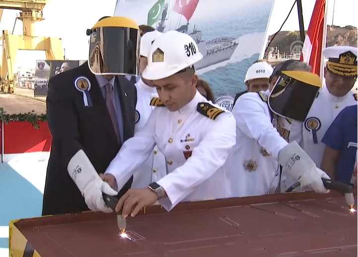 Pakistan Navy Chief OF Staff Admiral Zafar Mahmood Abbasi and the President of the Turkish Republic, Recep Tayyip Erdoğan jointly cut the first steel of the first Milgem class warship for Pakistan. The ceremony was held on 29th September 2019 in Istanbul Naval Shipyard.