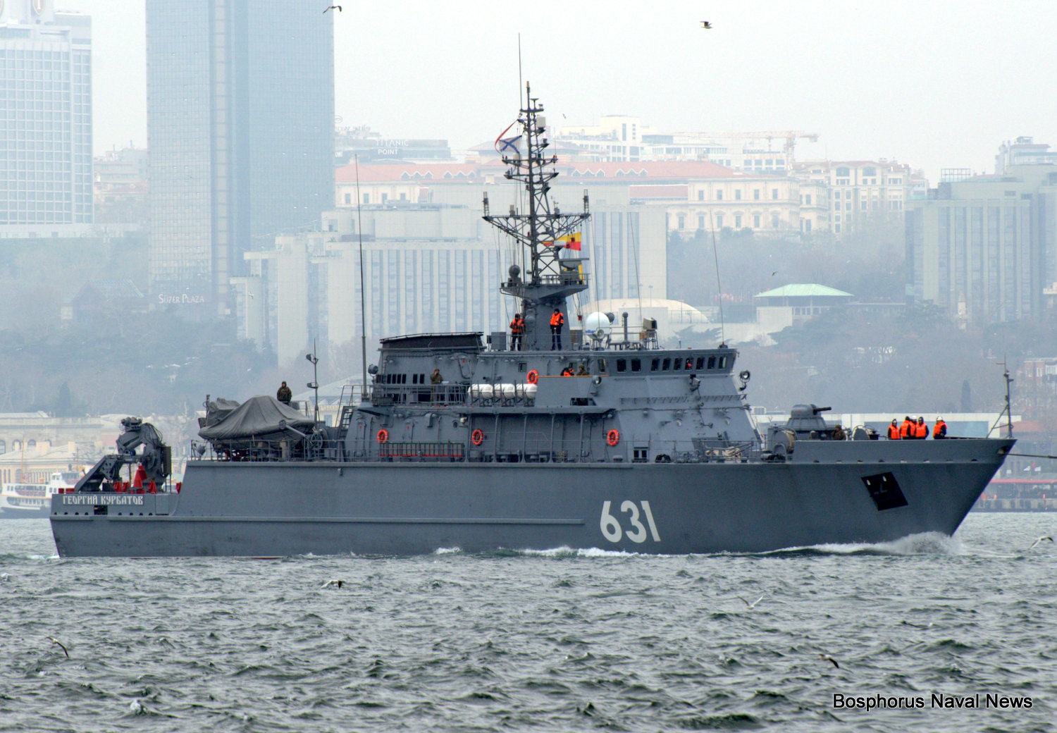 The Project 12700 Aleksandrit class minehunter Georgy Kurbatov made her inaugural passage through Istanbul this afternoon. She was towed by the Project 22870 class rescue Tug SB-739 Spasatel Vasily Bekh.