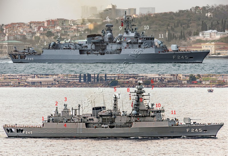 11. The forward-looking Sea Zenith turret was also removed. One Gökdeniz CIWS turret with its own detection and fire control radar will be fitted to this space.