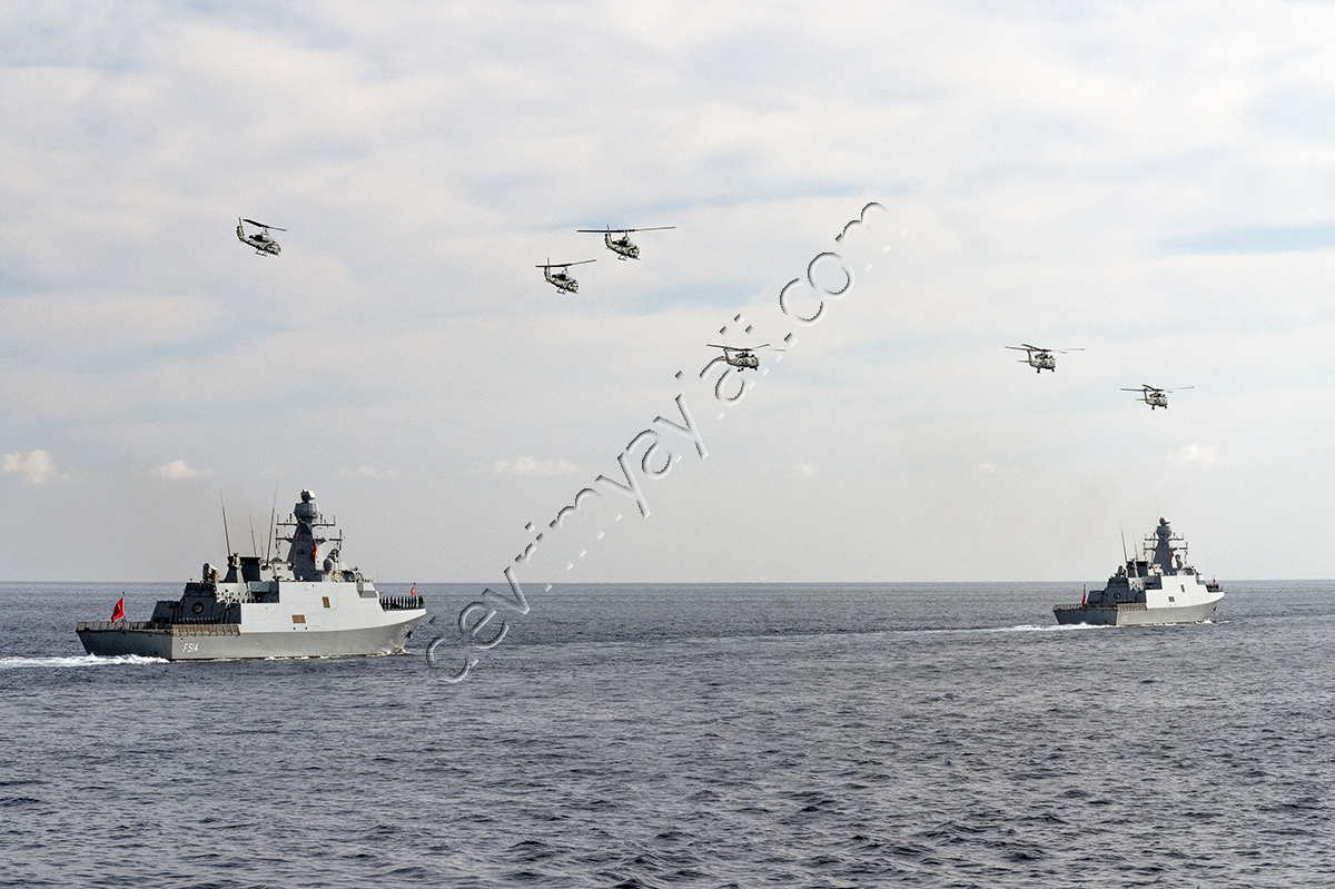 The day unfolded with various operations showcasing the Navy’s capabilities. As the TCG Salihreis set sail after the arrival of Yaşar Güler the Minister of Defence, the Turkish Chief of Staff and the Commanders of , the first activities involved mine countermeasures. The TCG Anamur mine-hunting ship and an underwater defence team aboard an SH-70 Seahawk helicopter carried out a Tactical Claw operation. They expertly identified and neutralized simulated mines, demonstrating their ability to safeguard high-value assets from underwater threats.