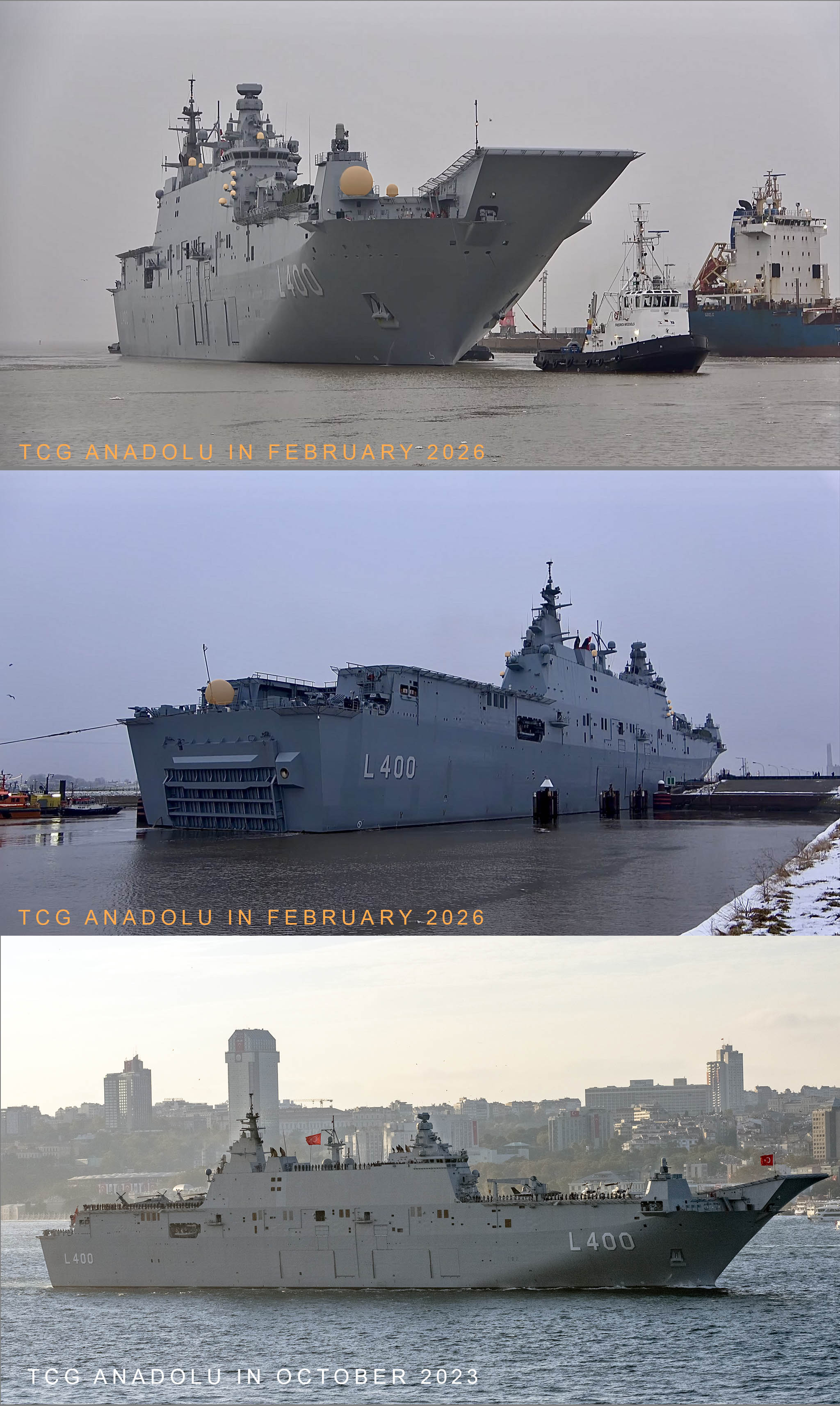 TCG Anadolu has arrived in Emden, Germany, to participate in Exercise Steadfast Dart 2026. Two recent photos from her arrival show how the ship has evolved over the past two years and three months.