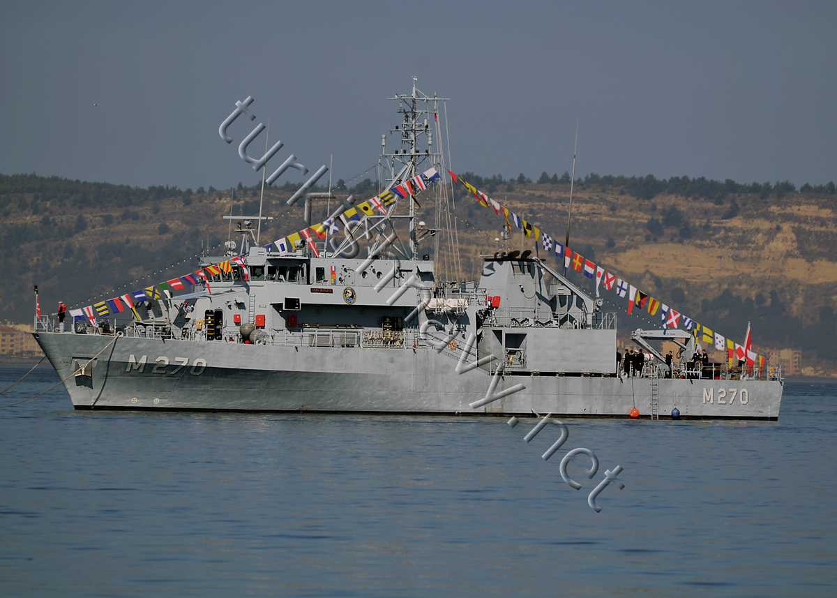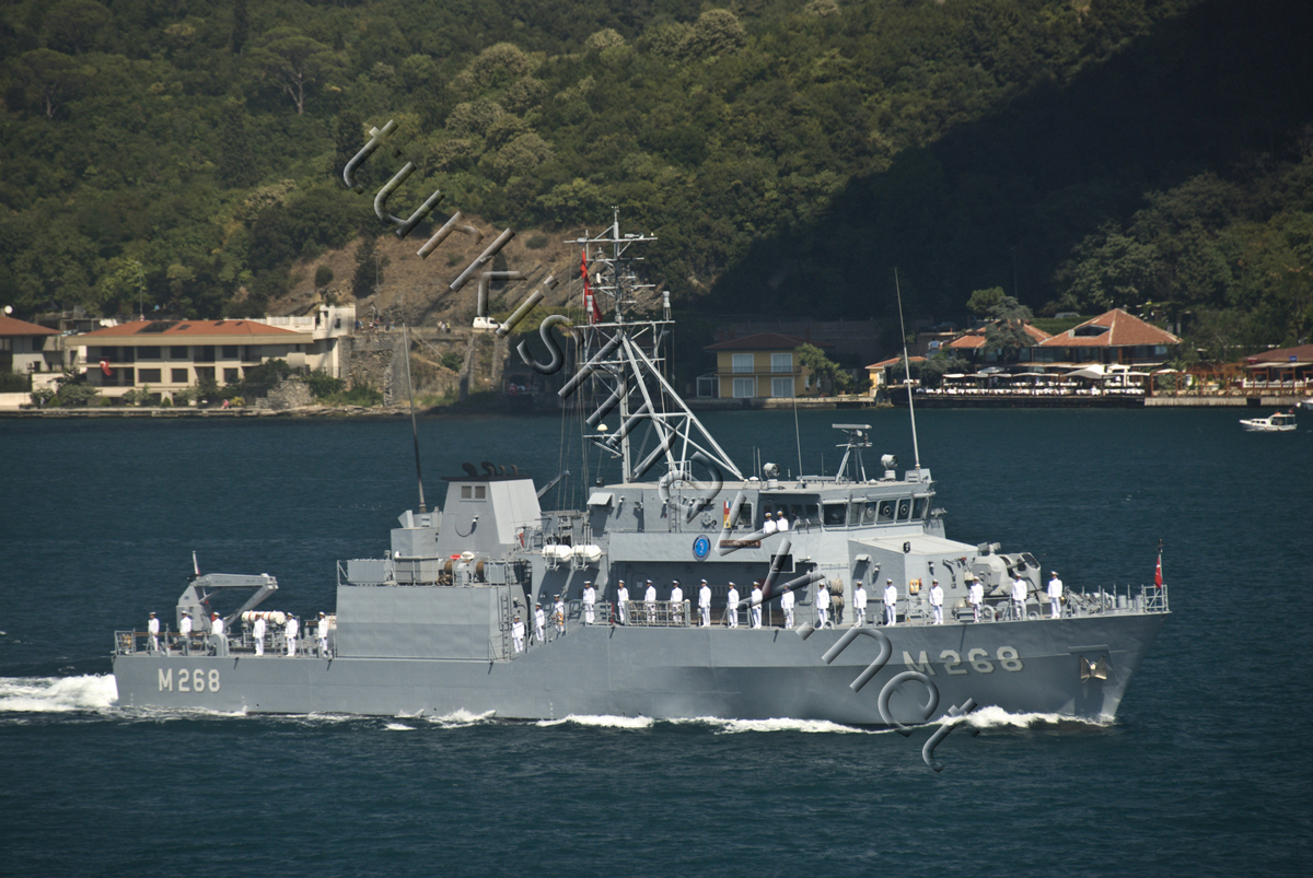 First ship was built in Germany; reminder in Istanbul Naval Yard. Contrary to the widely adopted use of GPR, these ships are made of non-magnetic steel. The design is very similar to Type 332 mine hunters in German Navy. Thus the Turkish Navy became the second navy using non-magnetic steel in NATO for mine hunters besides German Navy